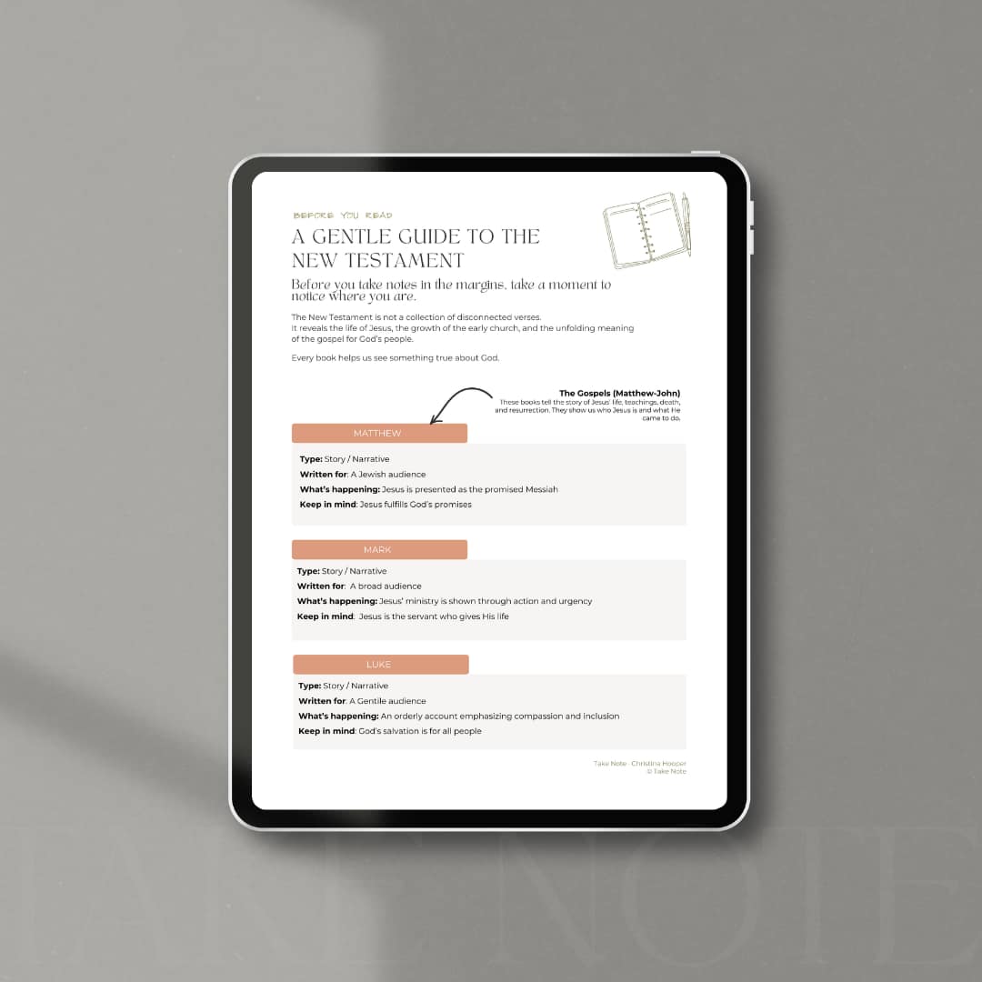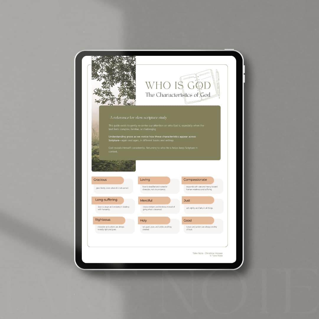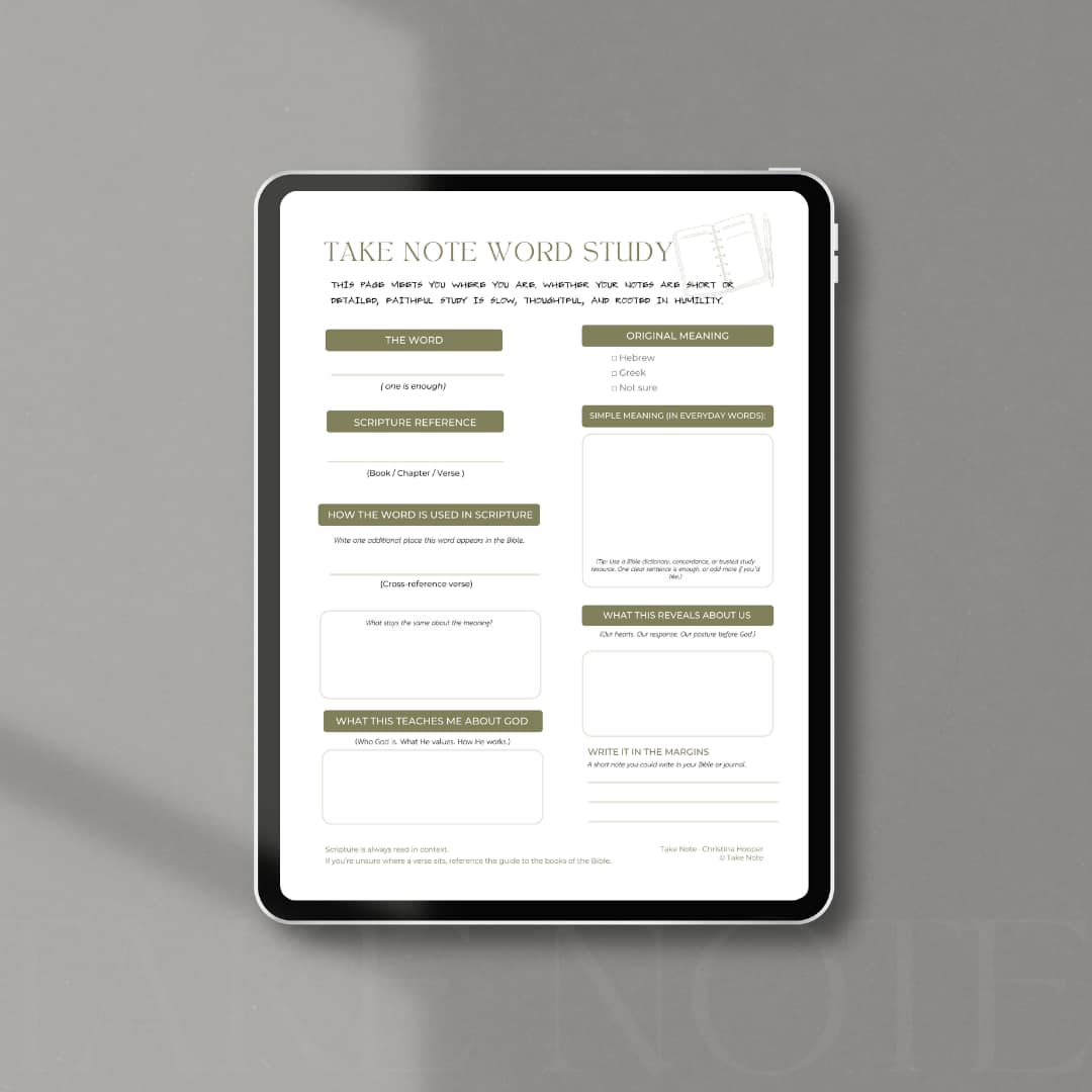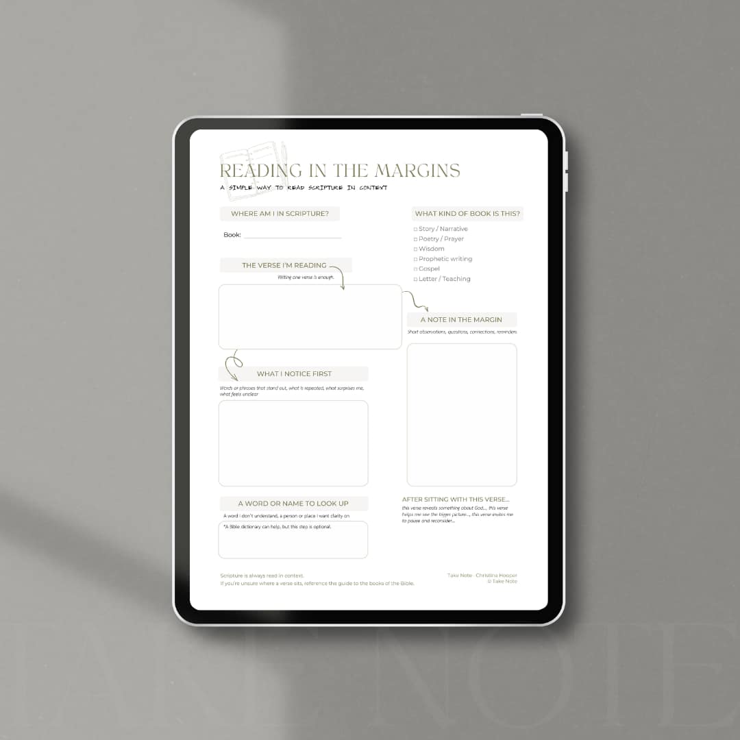 I’m working on a physical Take Note Study Guide that gathers these slow study tools into one place and offers space to keep your Scripture notes over time.